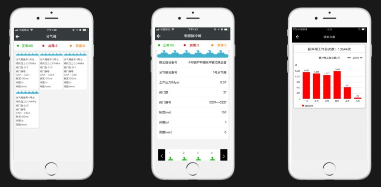 ①掌上監控:隨時隨地查看除塵器、氣包、脈沖閥的運行狀態