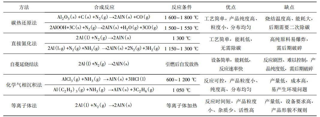 (來源:蔣周青,等::氮化鋁粉體制備技術的研究進展)