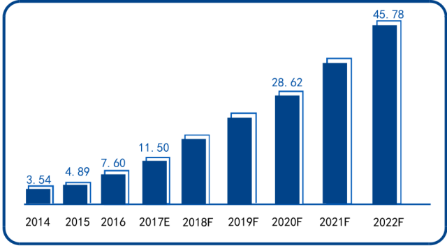 2014-2022年中國(guó)碳納米管導(dǎo)電漿料產(chǎn)值分析及預(yù)測(cè)(億元)
