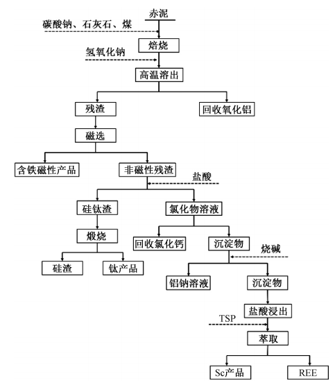 赤泥中常含有多種有價金屬,主要包括鐵、鋁、鈦、釩、鈧及稀土元素等,可作為潛在資源加以回收利用。如何在不產生二次污染的情況,有效、經濟地提取并富集其中的有價元素,是赤泥提取有價元素的關鍵所在。