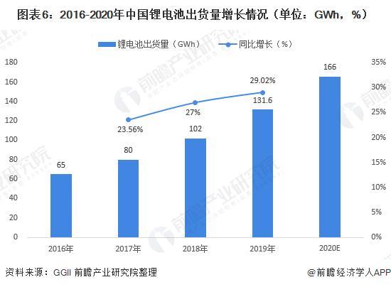 受益于新能源汽車和動力電池出貨量增長,2016-2019年中國鋰電池出貨量逐年上升。根據高工鋰電數據顯示,2018年中國鋰電池總出貨量102GWh,同比增長27%。2019年中國鋰離子電池出貨量達到131.6GWh。初步估算,2020年鋰電池出貨量突破160GWh。