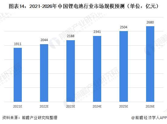 隨著我國新能源汽車市場的擴大,動力性鋰電池需求量將會有大幅提升,同時,手機、電動車、電動工具、數碼相機等行業的快速發展,對鋰電池的需求將會不斷增長。此外,由于鋰電池生產廠家在技術上的革新,人們對鋰電池的需求仍會不斷增長,鋰電池行業發展前景較好,前瞻預計到2026年我國鋰電池行業市場規模將超過2600億元。