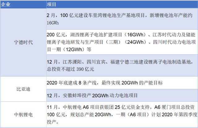 中長期來看,全球主要車企都對新能源汽車做出了5-10年的規劃,動力電池需求量將面臨井噴。寧德時代、比亞迪、國軒高科、中航鋰電、孚能科技、蜂巢能源等企業都在進行大規模擴產,以應對需求壓力。