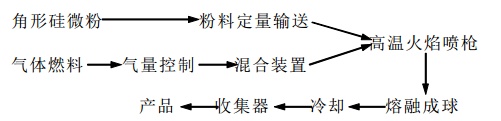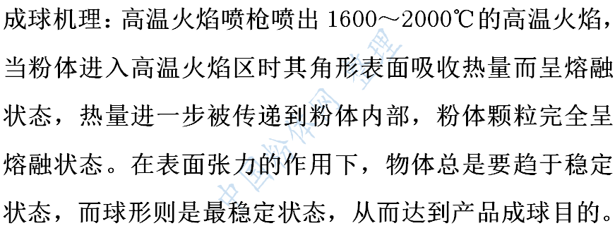 已產(chǎn)業(yè)化的氣體燃燒火焰成球法,其主要生產(chǎn)設(shè)備有:粉料定量輸送系統(tǒng)、燃?xì)饬靠刂坪突旌涎b置、氣體燃料高溫火焰噴槍、冷卻回收裝置,下面分別簡(jiǎn)要介紹其工作原理。
