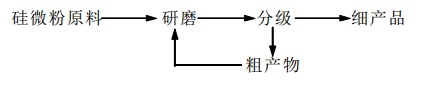 干法研磨生產(chǎn)工藝:是將硅微粉原料放進(jìn)球磨機(jī)或振動(dòng)磨中研磨,該研磨工藝可以連續(xù)進(jìn)料和出料,也可以一次投入若干重量原料,連續(xù)研磨若干時(shí)間后出料;出料時(shí)要經(jīng)過微粉分級(jí)機(jī)控制粒度,粗的產(chǎn)物返回磨機(jī)再磨或作為產(chǎn)品,細(xì)的則是產(chǎn)品。干法研磨要嚴(yán)格控制入磨物料水分,產(chǎn)品不再干燥。