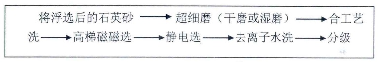 選礦提純一般是將雜質(zhì)含量較高的硅質(zhì)原料經(jīng)過破碎、篩分、磨礦,使二氧化硅與雜質(zhì)充分解離,經(jīng)過磁選、浮選除去雜質(zhì);再用酸洗方法,使雜質(zhì)進(jìn)一步降低,然后用清水洗去酸液,再用去離子水洗去顆粒表面吸附的殘余雜質(zhì)離子,使原料達(dá)到或高于硅微粉的化學(xué)指標(biāo);干燥后成為加工硅微粉的原材料。