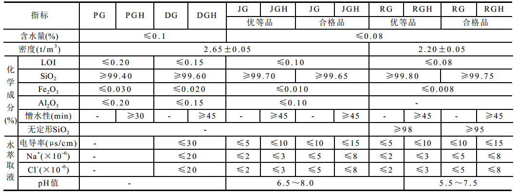 電子電器工業(yè)用硅微粉理化指標(biāo)