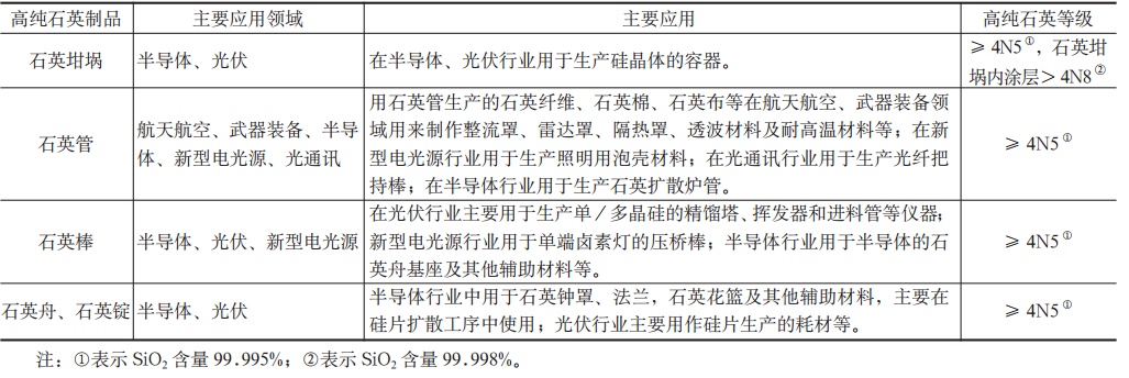 普通石英是玻璃、陶瓷以及工業(yè)硅、石油壓裂支撐劑生產(chǎn)的主要原料,高純石英是信息技術(光通訊等)、光電源等產(chǎn)業(yè)用石英玻璃的原料,而高純石英高端產(chǎn)品則是芯片產(chǎn)業(yè)(半導體)、新能源(光伏等)和硅產(chǎn)業(yè)等功能材料和關鍵基礎材料生產(chǎn)的原料,在國家戰(zhàn)新產(chǎn)業(yè)、經(jīng)濟安全和國防安全都具有重要作用。