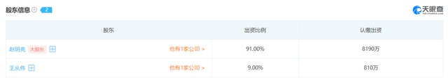 此外,該公司股東為趙明亮(出資比例為91.00%)、王從偉(出資比例為9.00%),而兩位股東名下皆只有“連云港亮晶新材料科技有限公司”這一家公司。