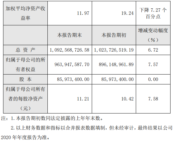 2020年度主要財(cái)務(wù)數(shù)據(jù)和指標(biāo)
