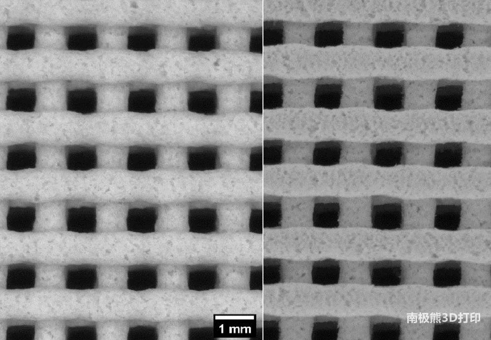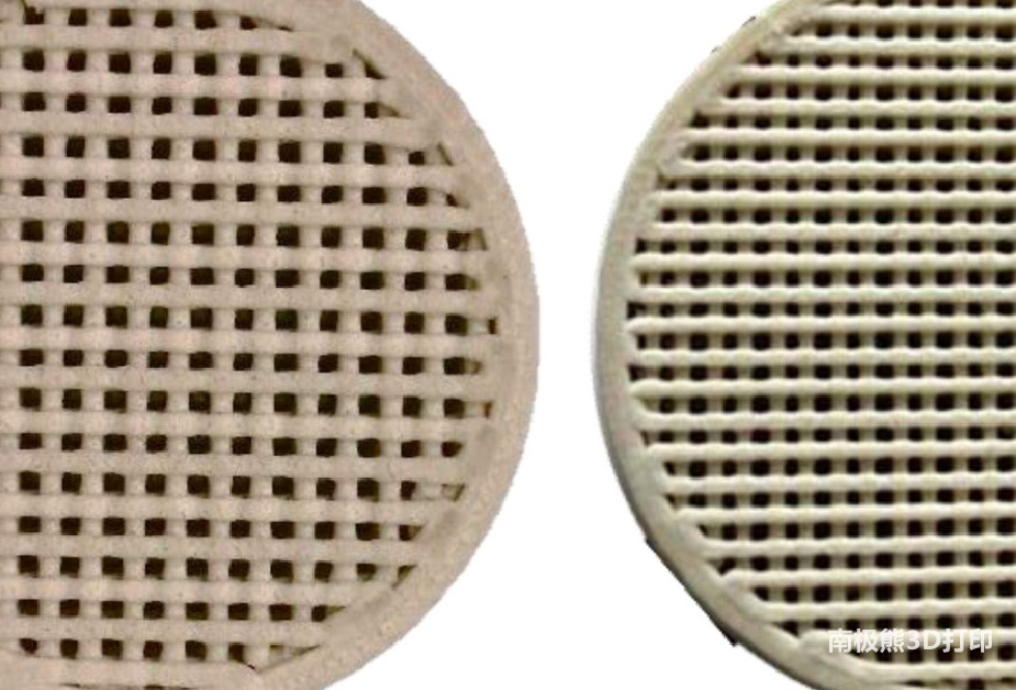陶瓷3D打印測試件(左邊是600微米的噴嘴,右邊是400微米),圖片來自《Applied Materials Today》雜志