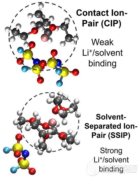鋰離子和電解質分子之間結合的模擬結構(來自:UCSD)