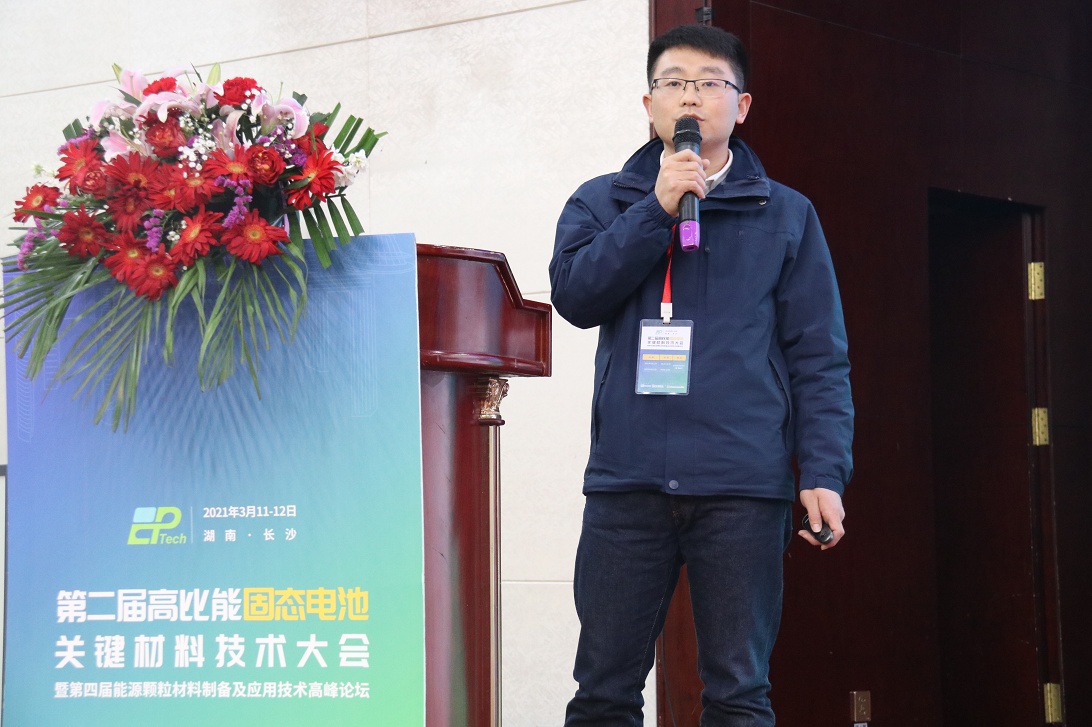 長沙礦冶研究院有限責任公司項目經理鞠博偉做《有機無機復合固態電解質及固態電池技術開發進展》報告