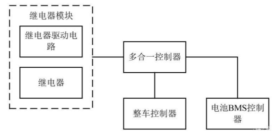 另外在電控方面同樣也有相關研究,專利公開了一種汽車的高壓配電控制系統(tǒng)和汽車,該裝置包括:繼電器模塊、多合一控制器、整車控制器和電池BMS控制器;所述繼電器模塊,包括:繼電器驅動電路和繼電器;所述多合一控制器中,不包含高壓配電板;其中,所述多合一控制器,分別與所述繼電器模塊、所述整車控制器和所述電池BMS控制器連接。該方案,通過簡化多合一控制器的電氣結構,減小多合一控制器內部各模塊之間的相互干擾。