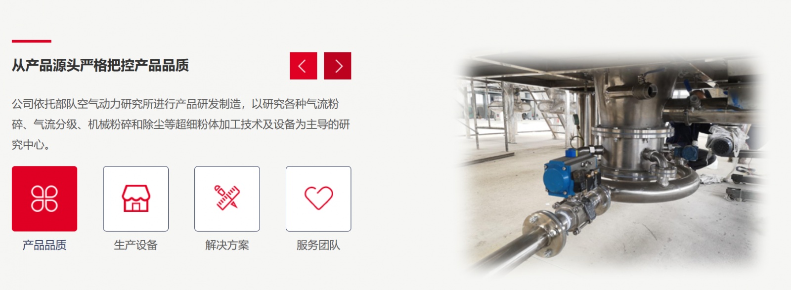 公司依托中國空氣動力研究與發展中心進行產品研發和技術升級,該中心是基于空氣動力學及氣固兩相流理論研究為基礎整合了教授、研究員、博士為主體的研究隊伍二十余人,以研究各種氣流(蒸汽)粉碎、氣流分級、機械粉碎和除塵等超微技術為主導的研究中心。同時,公司與中國(綿陽)科技城工業技術研究院形成了技術聯合體,該院為我公司提供機械設計、外觀結構設計等相關技術支持。公司崇尚自主創新、追求卓越,在氣流粉碎、空氣分級技術、粉體表面改性的設備領域中的研究已走在粉體工業的前沿。公司已成為技術領先、設備完善的粉碎、分級設備的研制與微粉加工的專業公司。