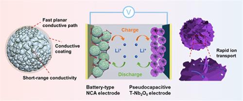 以鋰離子電池和超級(jí)電容器為代表的電化學(xué)儲(chǔ)能器件應(yīng)用廣泛,然而,傳統(tǒng)鋰離子電池受限于遲緩的體相反應(yīng)而具有較差的功率性能;超級(jí)電容器利用快速的表面過(guò)程存儲(chǔ)電荷,但受限于較低的能量密度。二者之間存在較大的性能空白,難以滿(mǎn)足同時(shí)對(duì)能量和功率密度有較高要求的應(yīng)用場(chǎng)景。將電池電極和超級(jí)電容器電極集成在一個(gè)器件內(nèi),有望結(jié)合兩種儲(chǔ)能機(jī)理的優(yōu)勢(shì),獲得“雙高”的電池-超級(jí)電容器混合儲(chǔ)能器件。此前研究工作主要利用電池型負(fù)極和雙電層電容型正極器件,該器件構(gòu)型充放電過(guò)程所需的離子由電解液提供,與搖椅式工作機(jī)理的鋰離子電池相比需要消耗大量的電解液。此外,電池—超級(jí)電容器混合儲(chǔ)能器件的性能受到電池型電極和電容型電極之間不匹配的電荷存儲(chǔ)容量和電極動(dòng)力學(xué)的限制。