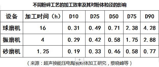 基于以上粉碎試驗效果,蔡高工得出結論:壓電陶瓷合成料采用砂磨機粉碎,更有利于改善壓電陶瓷的微觀組織結構,提高壓電陶瓷材料的機械性能和壓電介電性能,對超聲波霧化換能元件而言,可降低性能衰減速度達50%,明顯延長其使用壽命,由5000h延長至8000h。