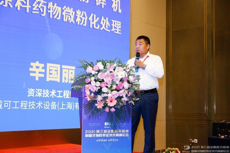戴可工程技術(shù)設(shè)備(上海)有限公司資深技術(shù)工程師辛國麗做《第四代氣流粉碎機(jī)用于原料藥物微粉化處理》報告