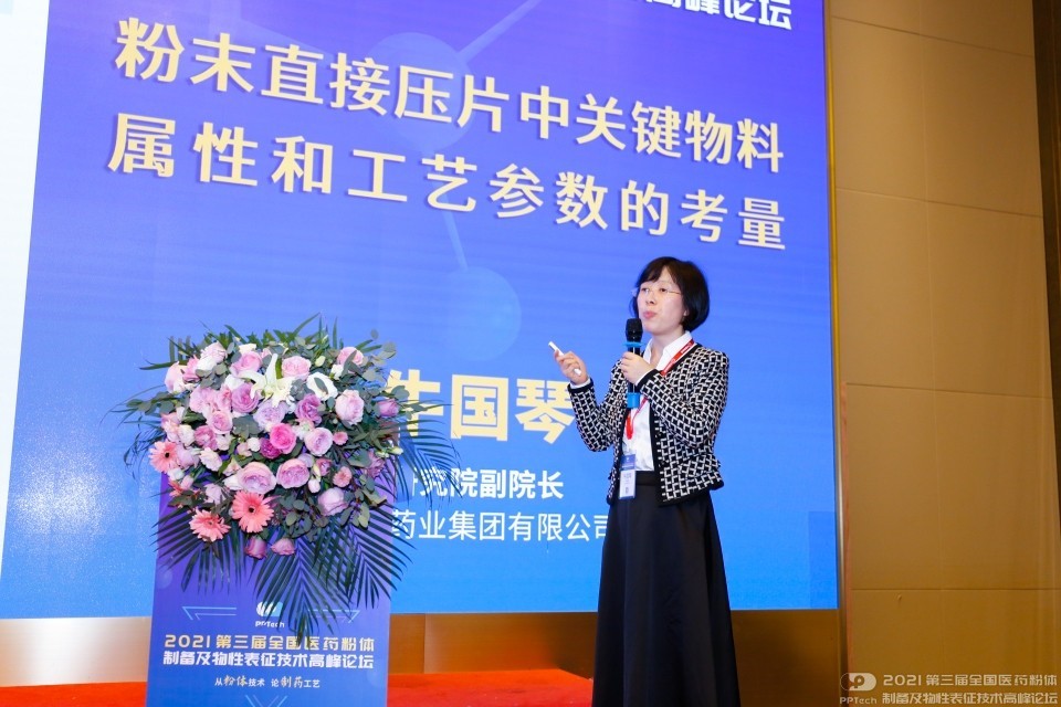 濟(jì)川藥業(yè)集團(tuán)有限公司研究院牛國琴副院長做《粉末直接壓片中關(guān)鍵物料屬性和工藝參數(shù)的考量》報告