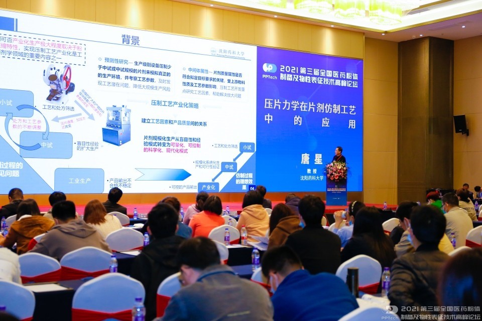 沈陽藥科大學唐星教授做《壓片力學在片劑仿制工藝中的應用》報告