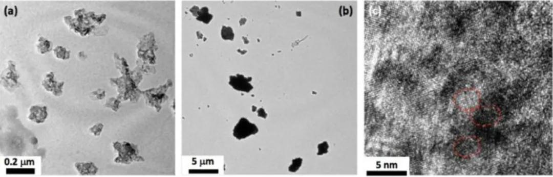 (a)BMG_30的低倍率TEM圖像,(b)BMG_100的低倍率TEM圖像,(c)BMG_100的高分辨率TEM圖像。
