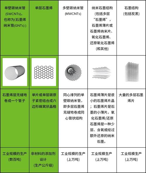 當(dāng)這些碳的同素異形體作為添加劑使用時(shí),它們的來(lái)源、形態(tài)和生產(chǎn)方法會(huì)影響材料的性能,而因?yàn)樘嫉牟煌螒B(tài)具有很大的不同。石墨烯和單壁碳納米管具有最佳的性能組合和優(yōu)勢(shì)。