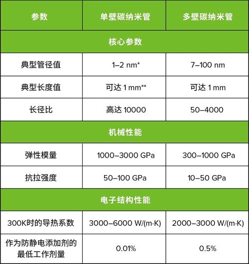 單壁碳納米管與多壁碳納米管的物理參數(shù)