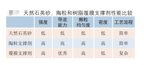 但樹脂覆膜支撐劑也存在以下問題:原料成本和工藝成本均高于陶粒支撐劑,經(jīng)濟(jì)性不強(qiáng);外層樹脂膜化學(xué)穩(wěn)定性不強(qiáng);在高閉合壓力下有可能會(huì)出現(xiàn)粘連現(xiàn)象,從而影響導(dǎo)流能力。