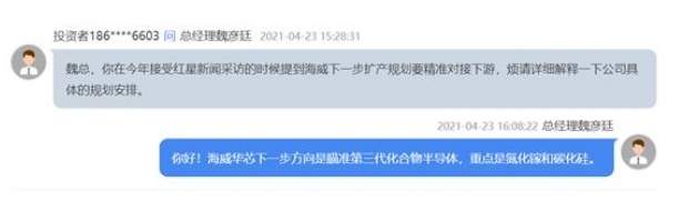 中國(guó)粉體網(wǎng)訊 4月23日,海特高新總經(jīng)理魏彥廷在2020年度業(yè)績(jī)網(wǎng)上說明會(huì)上表示,海威華芯下一步方向是瞄準(zhǔn)第三代化合物半導(dǎo)體,重點(diǎn)是氮化鎵和碳化硅。