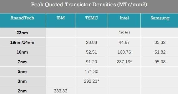 晶體管密度對比