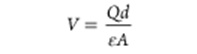 然而,從實際的角度來看,如圖所示,一個更有用的方程式可以用來計算真實器件的C,它包含兩個平行板之間的介電材料,面積為A,相隔距離d,受V的影響。可以通過應用高斯定律獲得: