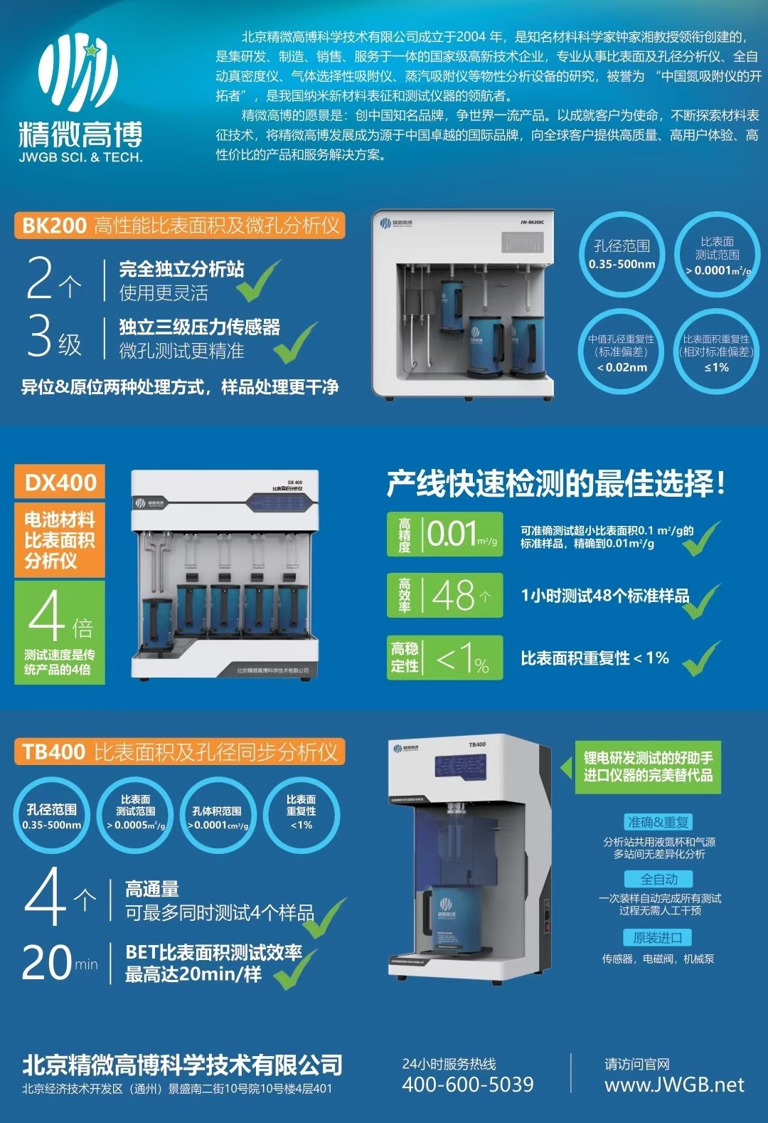 北京精微高博科學技術有限公司攜TB系列靜態容量法比表面積及孔徑分析儀和JW-DX動態氮吸附比表面測定儀亮相此次會議。