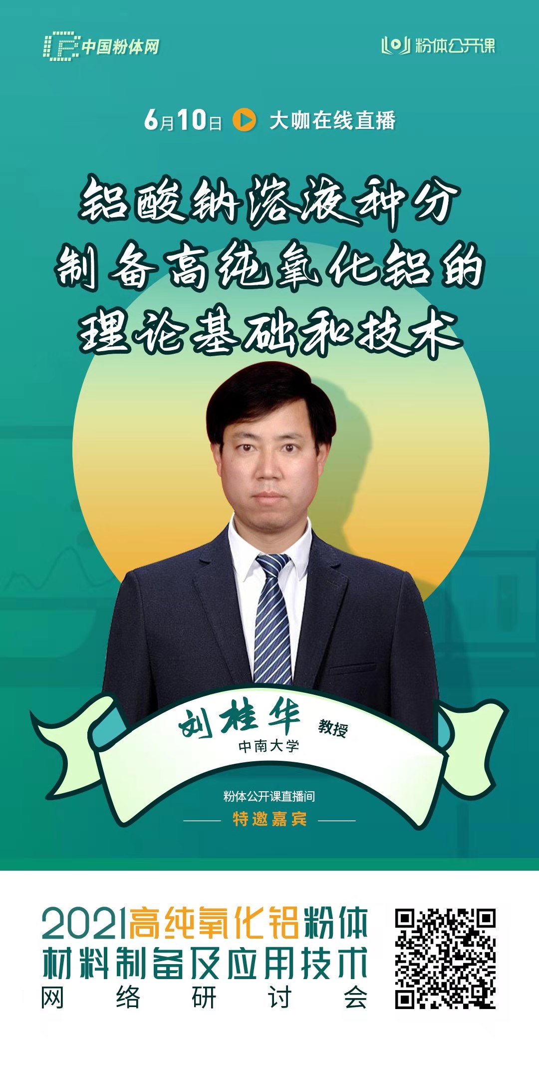 對于氧化鋁企業(yè),開發(fā)以工業(yè)鋁酸鈉溶液為原料制備高純氧化鋁,生產(chǎn)流程的溶液可在工業(yè)氧化鋁系統(tǒng)中循環(huán)使用,無廢液排除,安全環(huán)保;以鋁酸鈉溶液為鋁源,無需重新制備溶液,具有成本低的優(yōu)勢。因此,以工業(yè)鋁酸鈉溶液為原料制備高純氧化鋁,具有成本優(yōu)勢,研究制備過程相關理論和工藝,對企業(yè)轉型升級具有重要意義。中國粉體網(wǎng)旗下粉體公開課平臺將于2021年6月10日舉辦“2021高純氧化鋁粉體材料制備及應用技術網(wǎng)絡研討會”,來自中南大學的劉桂華教授將走進本次粉體公開課的直播間,給大家?guī)眍}為《鋁酸鈉溶液種分制備高純氧化鋁的理論基礎和技術》的報告。屆時劉教授將向大家闡述高純氧化鋁的用途,提出解決高性能和高成本矛盾的技術路線;明確鋁酸鈉溶液種分過程中鋁酸根離子反應行為,分析粒子附聚和生長規(guī)律,闡明三水鋁石和勃姆石析出過程中形貌調(diào)控原理;以工業(yè)鋁酸鈉溶液制備了大于4N高純氧化鋁粉末,同時報告高白超細氫氧化鋁、勃姆石的產(chǎn)業(yè)化過程。最后,提出鋁酸鈉溶液制備高純氧化鋁粉的發(fā)展方向。