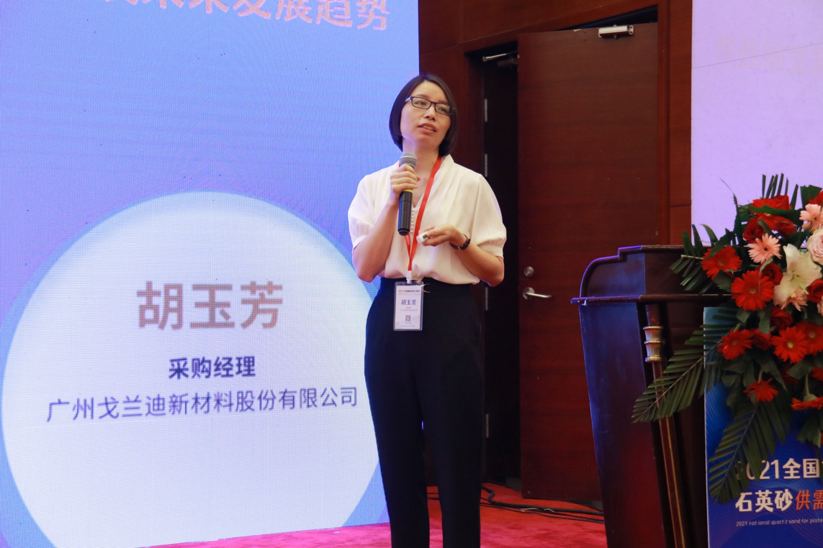 廣州戈蘭迪新材料股份有限公司胡玉芳經理作《石英砂粉對板材的作用及未來發展趨勢》報告