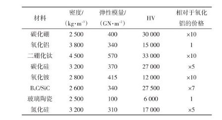 碳化硼陶瓷在這幾種陶瓷中密度最低,硬度最高,但同時其對加工工藝的要求也很高,需要高溫高壓燒結,因而成本也是這3種陶瓷中最高的。