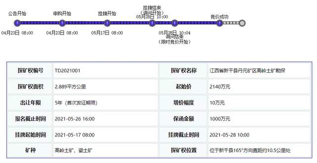 本次江西省新干縣丹元礦區高嶺土礦勘探探礦權出讓,大大刷新同類礦權出讓成交價,還也是江西“砂石熱”向“非金屬礦熱”的轉變。