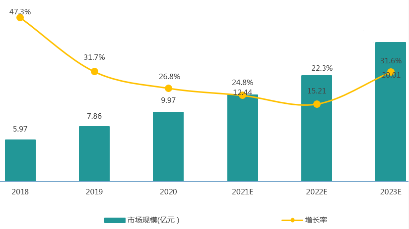 據悉,在5G、新能源汽車、能源互聯網、軌道交通等下游應用領域快速發展帶動及國家政策大力扶持的驅動下,2020年,中國第三代半導體襯底材料市場繼續保持高速增長,市場規模達到9.97億元,同比增長26.8%。預計未來三年,中國第三代半導體襯底材料市場規模仍將保持20%以上的平均增長速度,到2023年將突破20億元,達到20.01億元。