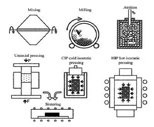 圖1 傳統的粉末冶金工藝流程示意圖