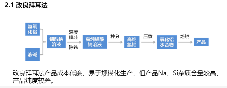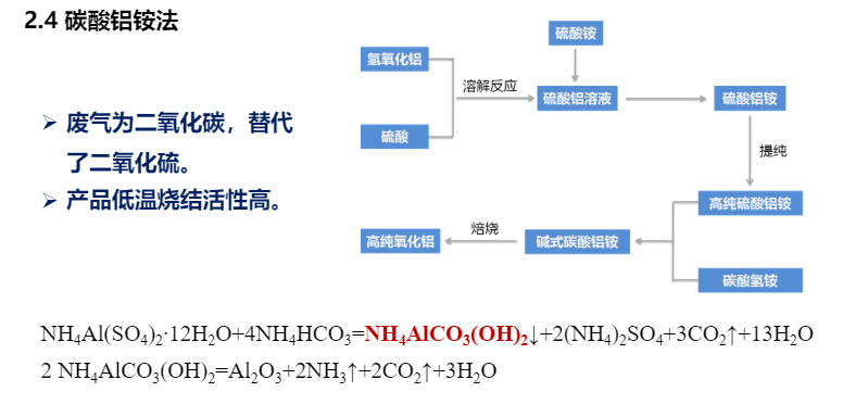(4)鋁酸鈉溶液種分制備低堿氫氧化鋁,活化焙燒-弱酸洗滌,超細(xì)氧化鋁的純度可達(dá)99.999%。以工業(yè)氫氧化鋁為原料,通過水熱法轉(zhuǎn)化勃姆石,再活化焙燒;或通過轉(zhuǎn)化水合碳鋁銨,再活化焙燒,活性氧化鋁純度可達(dá)99.99%;