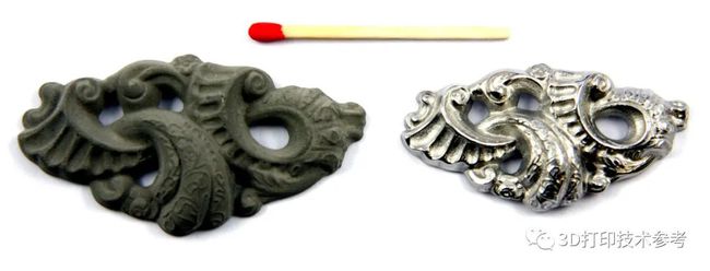 在《純銅3D打印新工藝:采用DLP工藝實現99.99%的材料純度》一文中,3D打印技術參考介紹了美國Holo公司利用高分辨率光學成像儀對純銅粉和光敏樹脂混合而成的漿料進行3D打印的技術,其結合已經非常成熟的金屬注射成型(MIM)后端工藝,對打印后的生坯進行脫脂和燒結,最終生產出高性能零件。而MetShape公司無疑將該技術的應用領域進行了拓展。