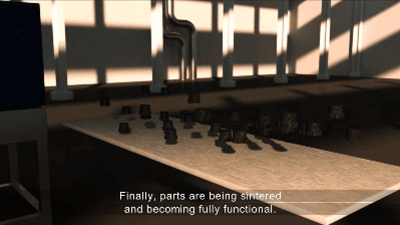 這種工藝的優(yōu)勢是擺脫了對零件支撐的依賴,相比SLM技術(shù)具有更高的設(shè)計自由度,相比粘結(jié)劑噴射具有更高的材料利用率,對于難加工材料也可以依靠傳統(tǒng)注射成型技術(shù)實現(xiàn)成型。