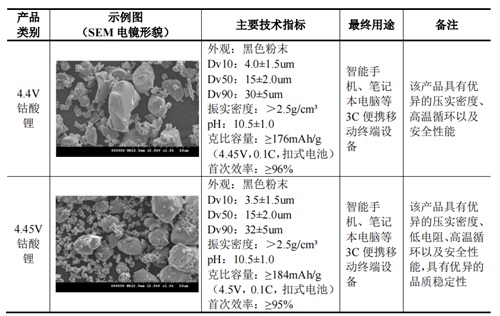 鈷酸鋰產品按照充電電壓高低可以分為4.35V、4.4V、4.45V等型號,能量密度隨電壓的升高而升高,相應電池的待機時間也越長。行業目前多數企業仍然以4.35V、4.4V產品為主,而目前公司以4.45V及以上高電壓產品為主,具有明顯的領先優勢,未來4.5V+鈷酸鋰產品是公司研發和生產的重點。