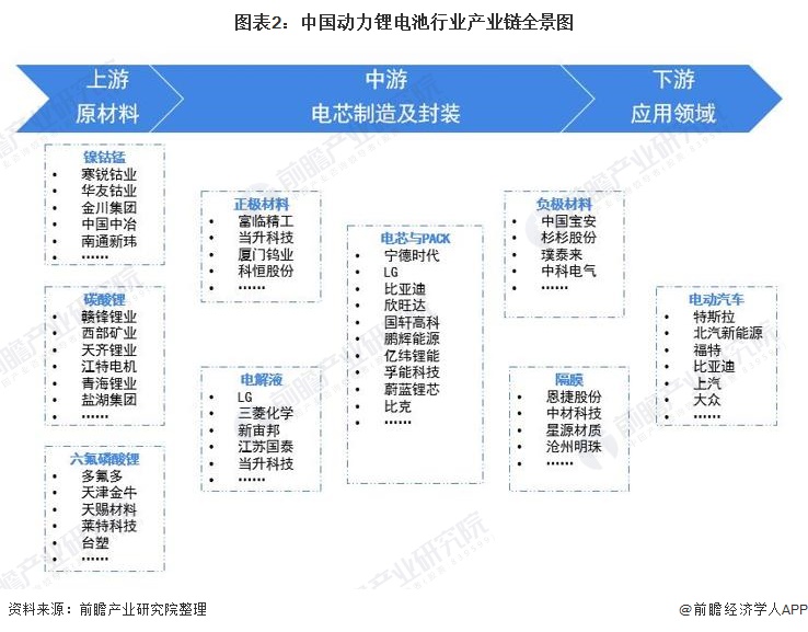 目前,我國動力鋰電池行業上游原材料的代表性企業有金川集團、西部礦業、天齊鋰業、多氟多、天賜材料等;中游電芯制造及封裝的代表性企業有寧德時代廈門鎢業、三菱化學、億緯鋰能。