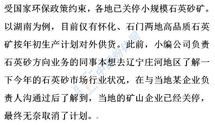 ——受環(huán)保因素影響,石英砂礦山關(guān)停