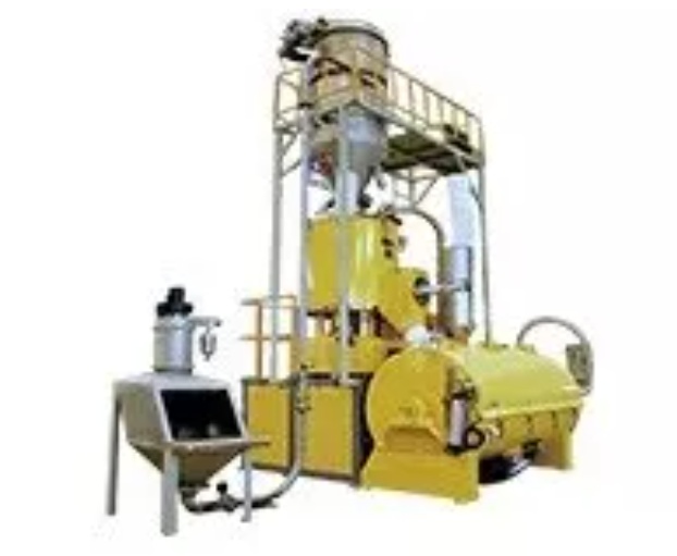 活化主機改性完成后,由出料提升機輸送物料進入冷卻混合機(兼儲料倉),對物料進行冷卻儲存。