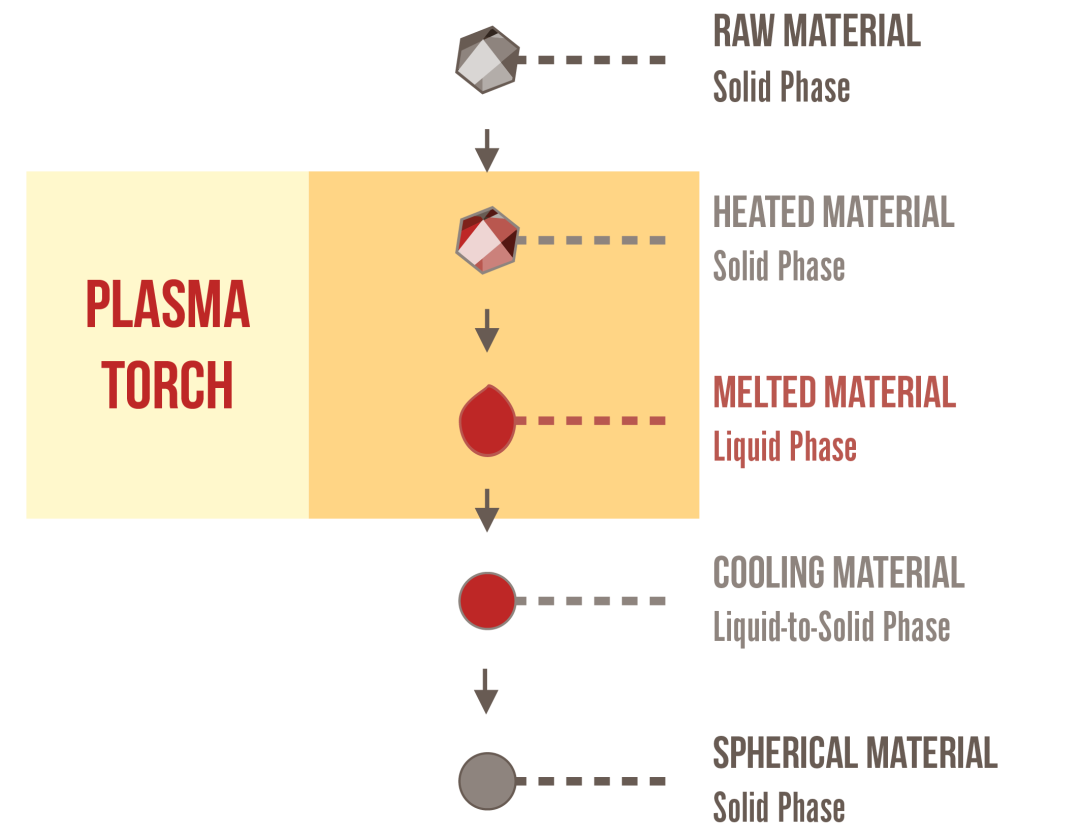 球化(SphEroIdiZation):將粉碎、霧化和海綿化的粉末轉為高度致密的球形粉末顆粒,包括進料顆粒的加熱和熔化,然后在受控條件下冷卻。