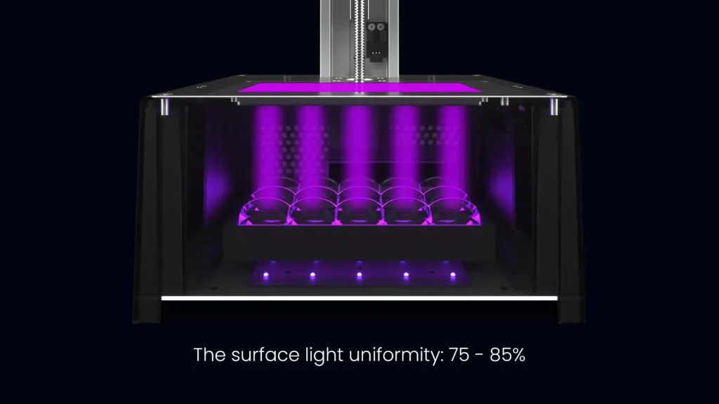Photon Ultra具有可調(diào)節(jié)紫外線(xiàn)功率的選項(xiàng),而速度上也獲得了提升。機(jī)器能夠以每層1.5秒的速度打印,與LCD打印機(jī)速度相當(dāng)(例如Anycubic Photon Mono X的速度為每層 1.5 – 2 秒),但比更傳統(tǒng)的點(diǎn)光源類(lèi)型SLA打印快5倍。