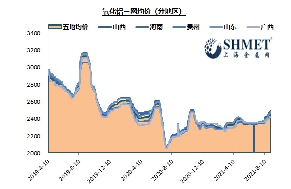 自今年夏季限電以來,國內氧化鋁現貨價格變開始逐步攀升,從山西、河南等地價格來看,日均漲幅大約在15元/噸水平以內。
