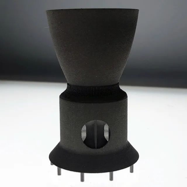 △使用鎢-錸3D打印的固體火箭發動機噴嘴的無侵蝕性核心插件。照片來自6K增材公司