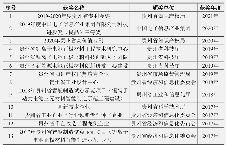 目前公司已獲授權15項發明專利和1項實用新型專利,先后獲得中國專利優秀獎、貴州省專利金獎、貴州省科技進步二等獎、貴州省科技成果轉化二等獎、2020年貴州省高價值專利等國家級、省部級獎勵9項。